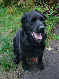 And finally, our furry child Eli. He's a rescue mutt descended from Newfoundland and retriever (we think), he's enormous, barks menacingly at squirrels, anyone in uniform, but is terrified of cats. Go figure. He's a sweet boy, and the truthful reason I wanted a dog was to have something home with me during the week so I had someone to talk to. Even if he isn't a human in this life.